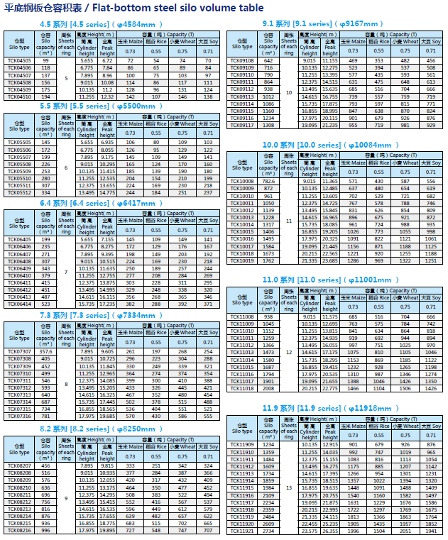 適于儲存糧食、種子、飼料、塑料粒、水泥煤炭及其他顆粒、粉狀物料。用于糧庫、面粉廠、糧米廠、油脂廠、麥芽廠、啤酒廠、港口、農場、糧食處理中心、煤礦等單位,作為基層收納倉、暫寸倉、中轉倉、原料倉、儲備糧食及其他用途。